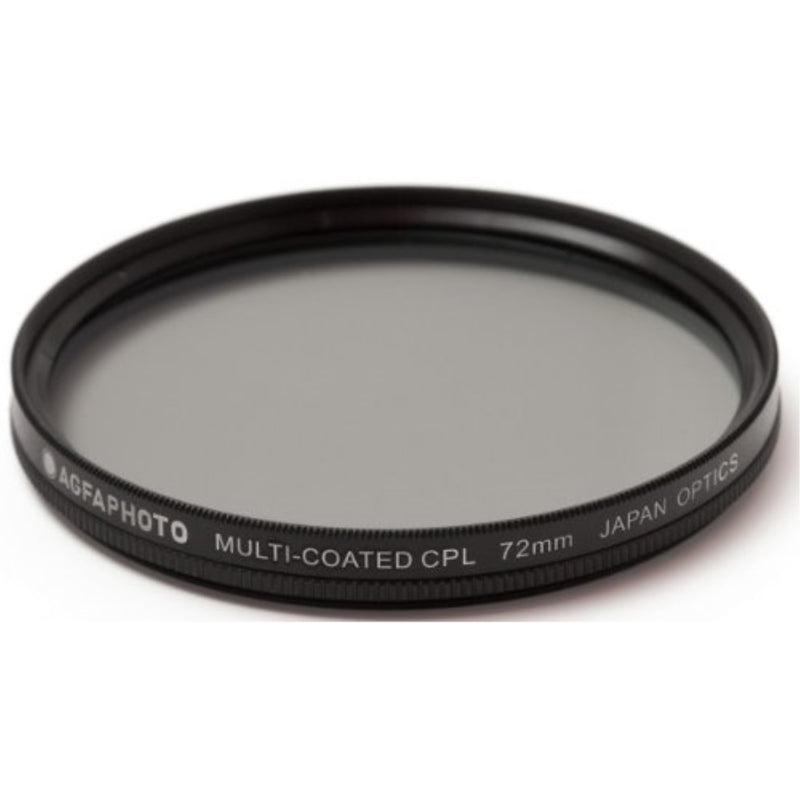 The AGFA digital multi-coated circular polarizing (CPL) filters are the perfect compliment for your lenses. Light rays which are reflected by any surface become polarized and these high quality filters are used to select which light rays enter your camera lens. It allows you to remove unwanted reflections from non-metallic surfaces such as water, glass, etc. It also enables colors to become more saturated and appear clearer. It makes the sky bluer and the clouds whiter. They also protect your lens. 72mm