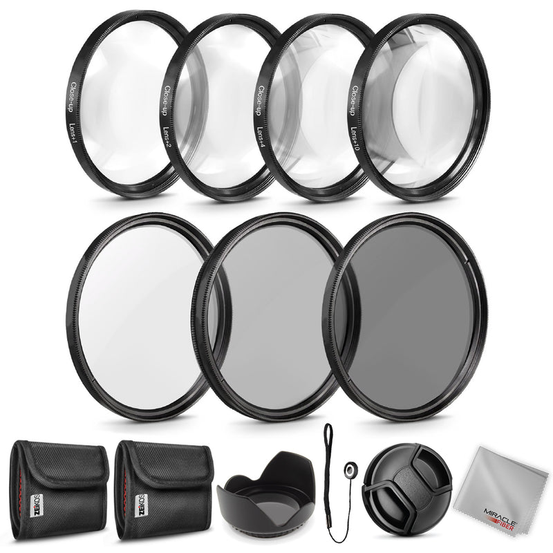 - Kit Includes: Seiko's 52MM Filter Kit (Ultraviolet UV, Circular Polarizer CPL, Fluorescent FLD) + Macro Close-Up Set (+1, +2, +4, +10) + Filter Carry Pouch + Tulip Flower Lens Hood + Center Pinch Lens Cap w/ Cap Keeper Leash + Miracle Fiber Microfiber Lens Cleaning Cloth.