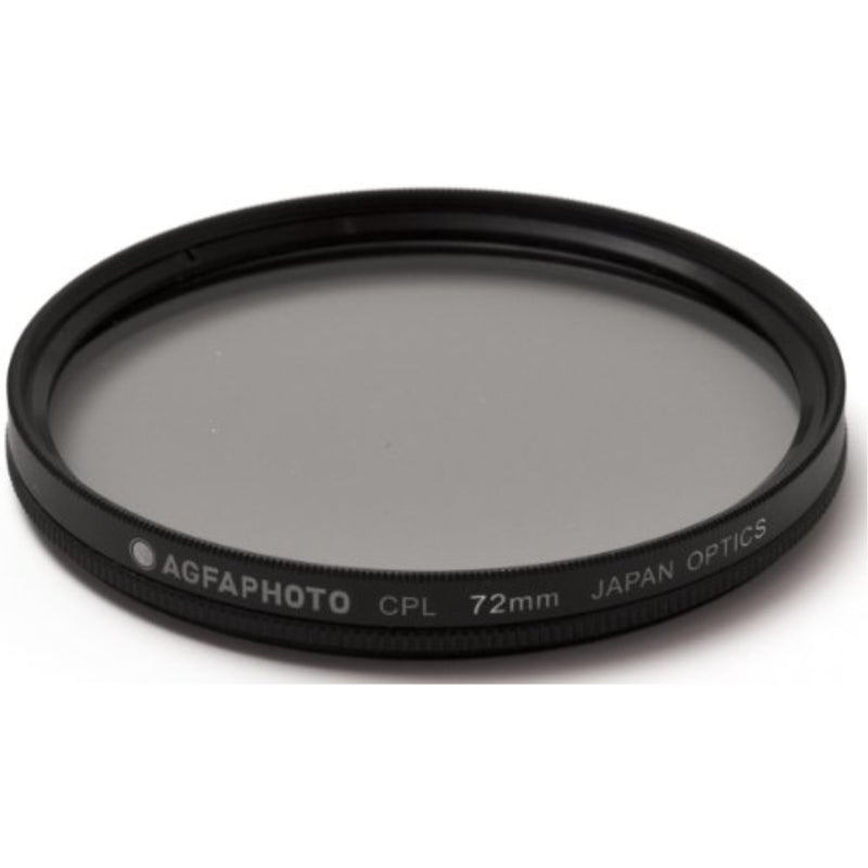 The AGFA glass circular polarizing filter, (CPL), protects your lens as well as reducing flare and shiny reflections from your photographs. It also helps to increase the saturation of colors and darken the blue sky while whitening the clouds. 72mm