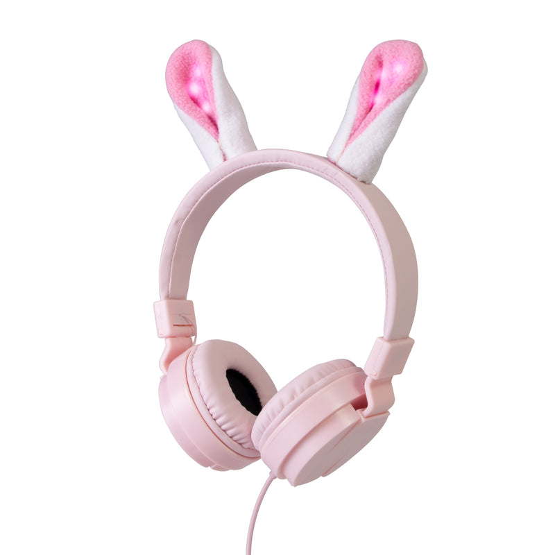 Durable Child-Friendly Design: The iHip pink bunny headphones kids-friendly On-Ear earphones have removable and magnetic ears with 3 modes LED lights. They feature a light On-Ear design, soft ear pads, and an adjustable headband to ensure comfort and perfect fit. The earphones are not only fun to wear but are also specially designed to protect kids' hearing, Children will be able to listen to music, watch a movie on a tablet or listen to their story box.